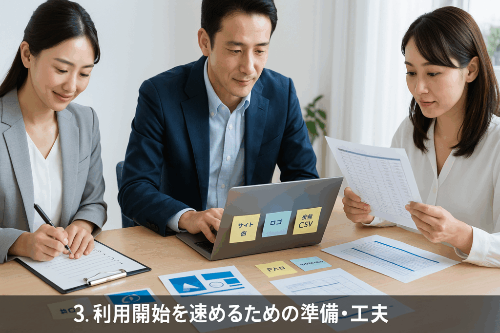 契約後、できるだけスムーズにシステムを使い始めるためには、以下の準備や工夫が有効です。